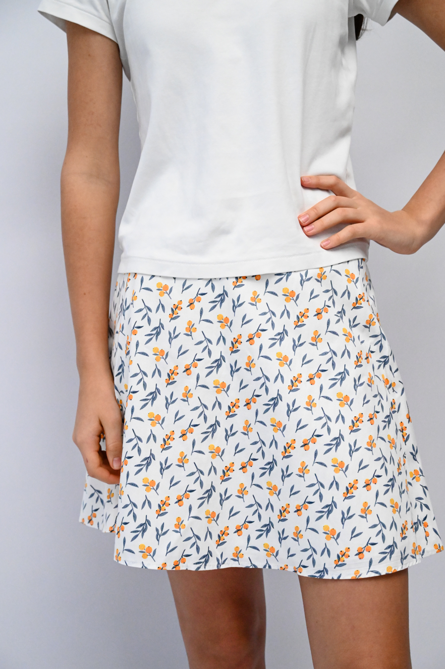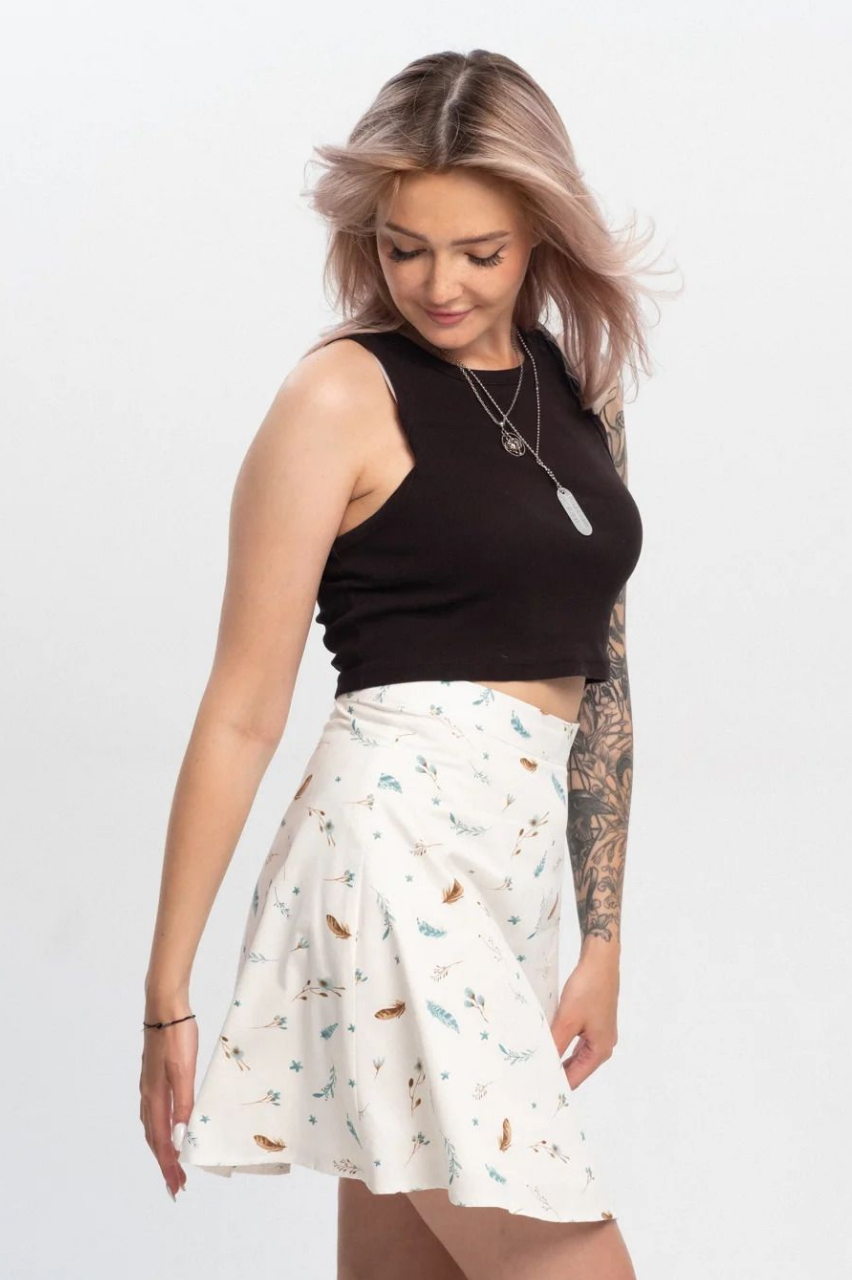 Обмеры изделия: S (рос. 42) объем юбки в талии 67см, длина юбки 49 см M (рос. 44) объем юбки в талии 73см, длина 49,5 см L (рос. 46) объем юбки в талии 77см, длина 50 см